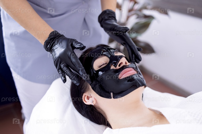 Красивая кавказская женщина с черной силиконовой маской для кожи