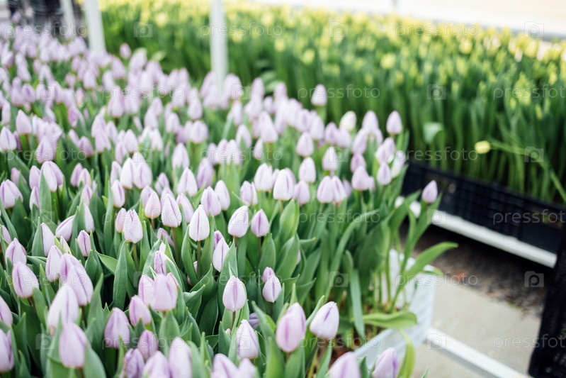 Большая светлая двухъярусная теплица для выращивания разных видов тюльпанов