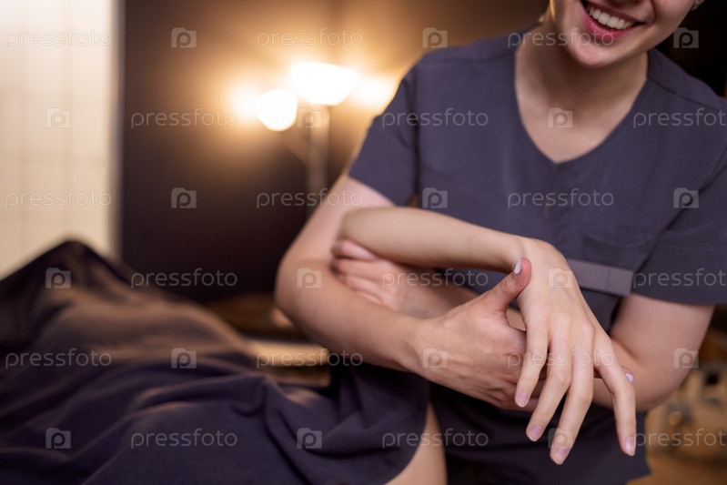 Крупный план молодых женских рук, получающих нежный массаж рук