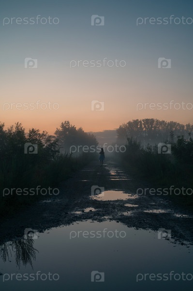 Женщина в красивом туманном тумане, летний пейзаж