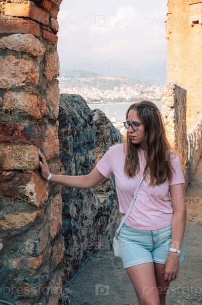 Руины крепости исторической Красной башни - Кызыл Куле, в замке Аланьи