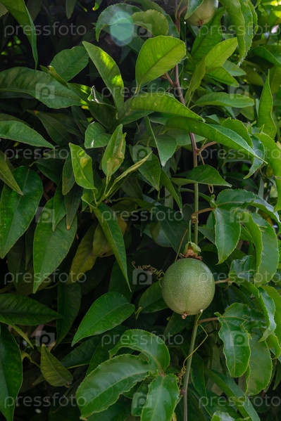 Маракуя из маракуйи, растущая на дереве в саду, красота летнего дня