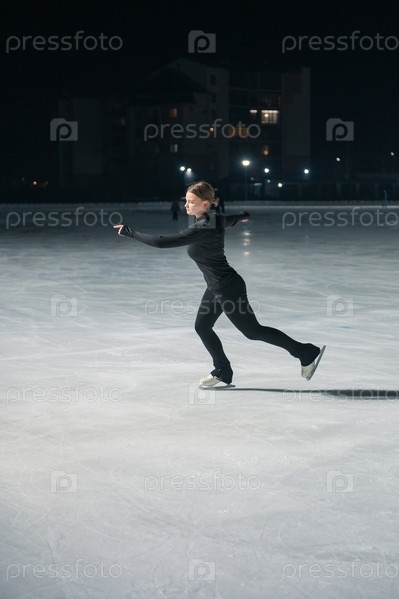 Красивая молодая женщина катается на коньках