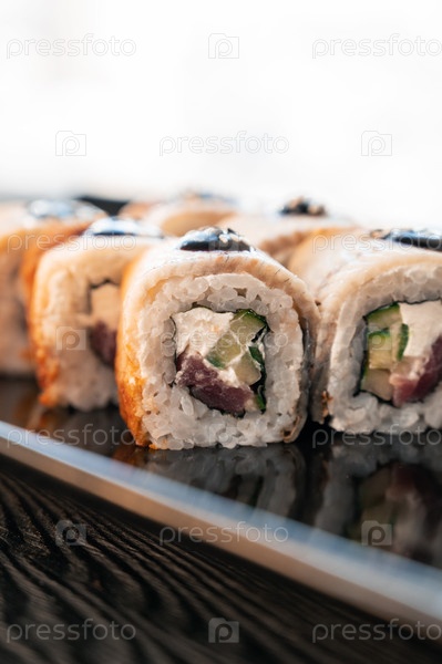 Суши Роллы Калифорния с креветкой, угрем, кунжутом