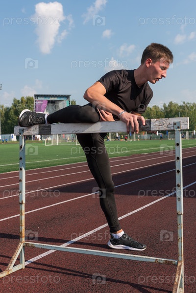 Молодой спортивный мужчина-спортсмен-бегун в растяжке