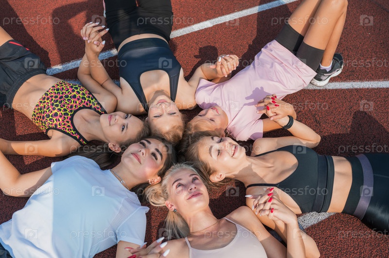Группа детей и молодых девушек с тренером-женщиной