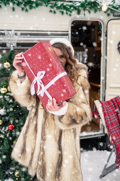 Красавица в костюме Санты в зимнем лагере