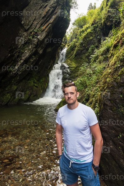 Мужской портрет на Телецком озере в горах Алтая, Сибирь, Россия. Красота летнего дня