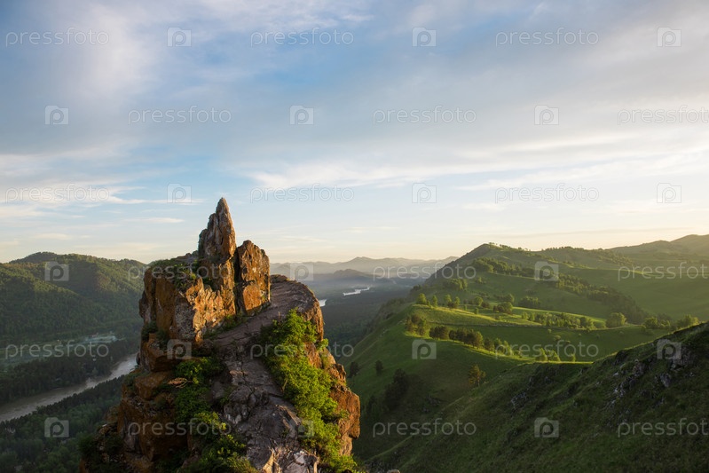Красота рассвета на вершине, в горах Алтая