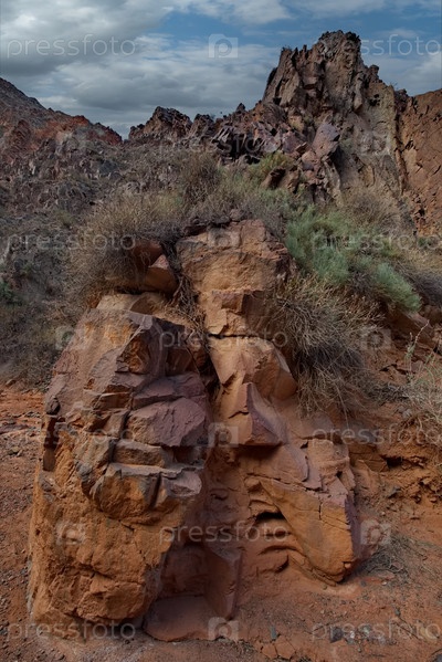 Северный Кыргызстан. Живописная извилистая тропа по каньонам Кок-Мойнок с красно-коричневыми скалами вдоль реки Чу