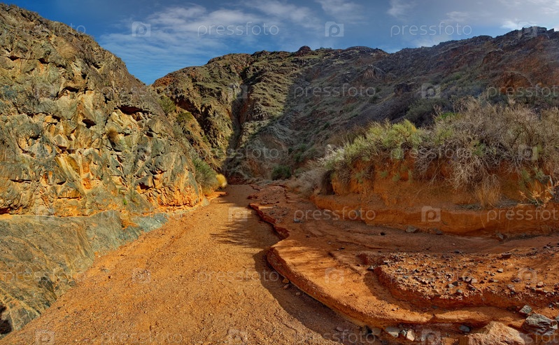 Северный Кыргызстан. Живописная извилистая тропа по каньонам Кок-Мойнок с красно-коричневыми скалами вдоль реки Чу
