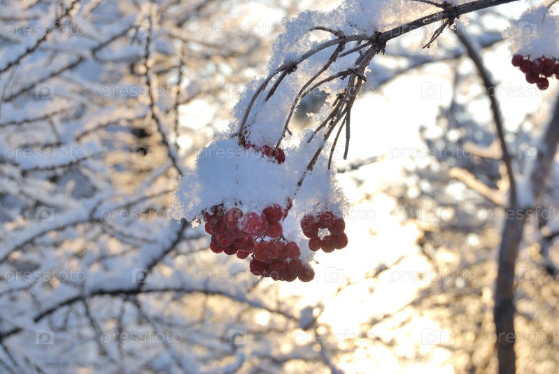 Растения, покрытые снегом, Омская область, Россия