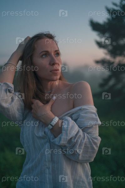 Женщина в поле с туманом