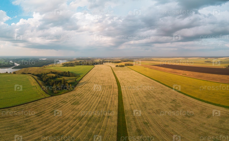 Вид с дрона на пейзаж пшеничного поля