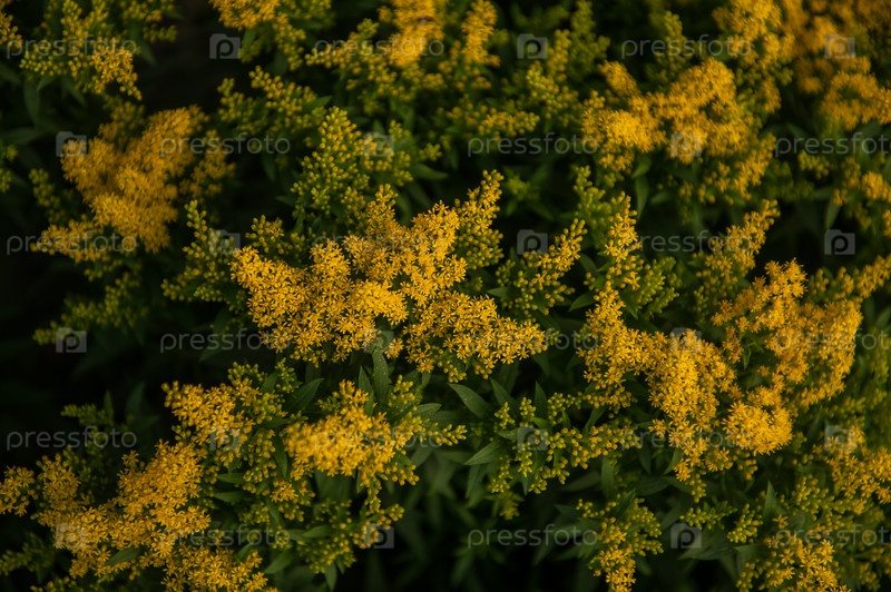Куст с желтыми цветами Solidago virgaurea, растение, используемое в лечебных целях