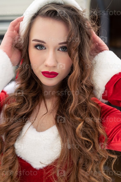 Красавица в костюме Санты в зимнем кемпинге готовится к Новому году. Концепция празднования Нового года