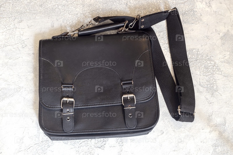 Новая, черная, мужская сумка с карманами крупным планом