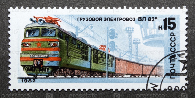 Почтовая марка СССР 1982 год. Грузовой электровоз ВЛ82м