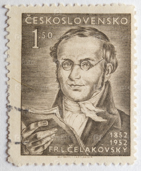 Почтовая марка с гашением Чехословакия 1952 год. Поэт Франтишек Челаковский (1799-1852). 100 лет со дня смерти