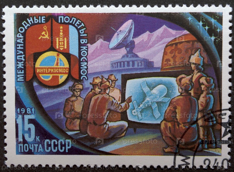 Почтовая марка с гашением СССР 1981 год. Международные полеты в космос. Интеркомсос