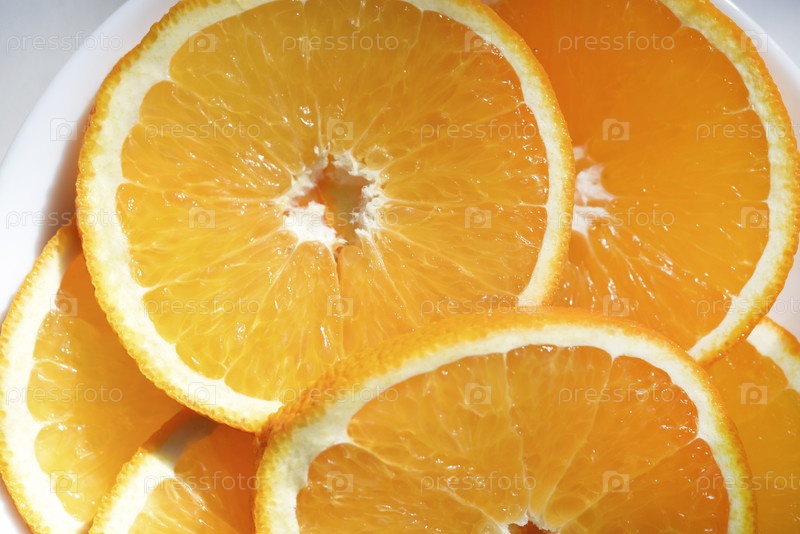 Нарезанные ломтики апельсина на тарелке. Апельсины крупным планом