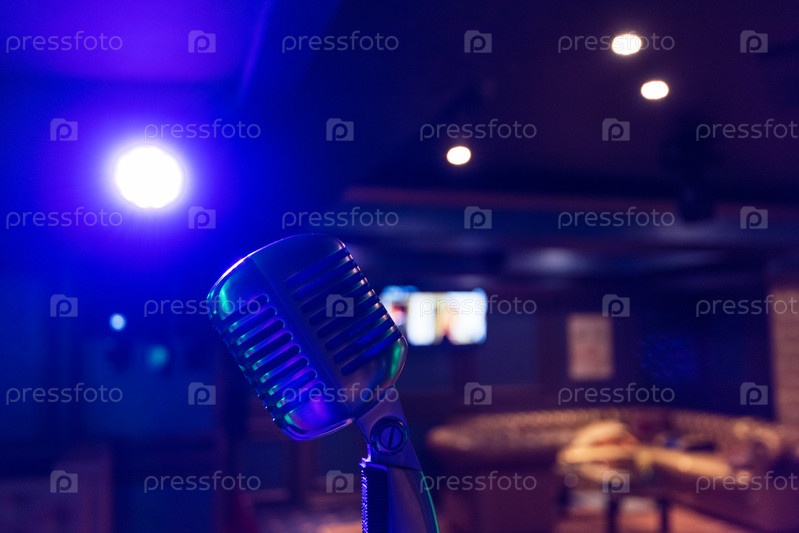 Ретро-музыкальный микрофон на сцене ночного клуба. Концепция шоу или выступления