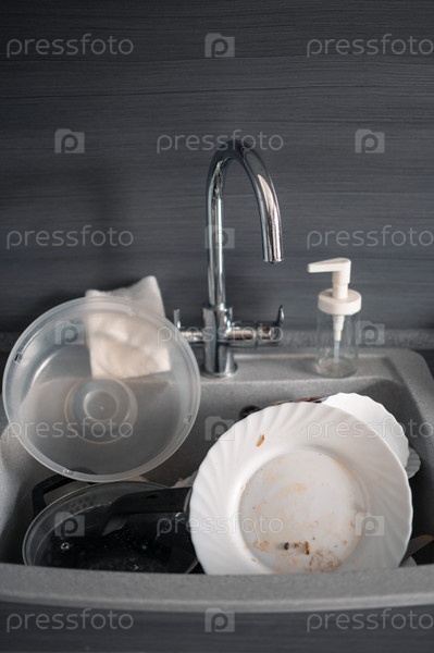 Много грязной посуды на кухне