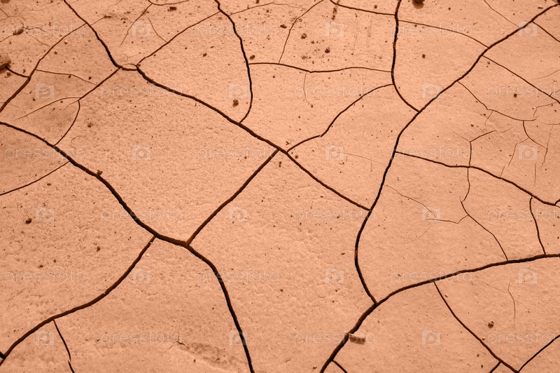 Земля с трещинами, окрашенными в модный персиковый цвет фона