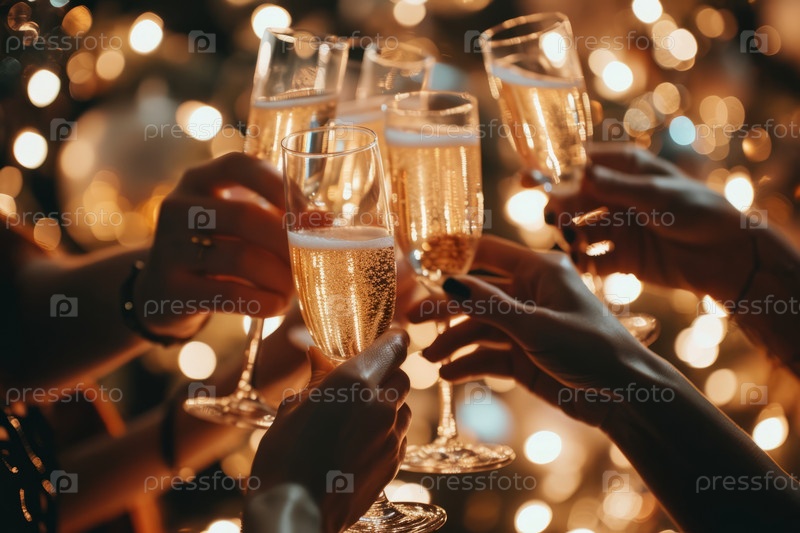Люди приветствуют тосты с бокалами шампанского на вечеринке в честь Нового года