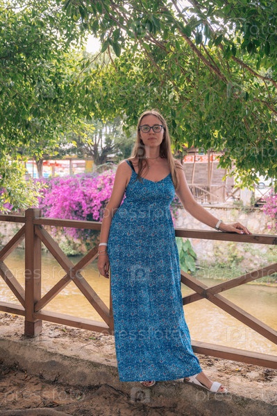 Женщина сидит на скамейке в городе Алания