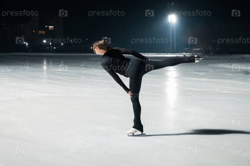Красивая молодая женщина катается на коньках и выполняет короткую программу