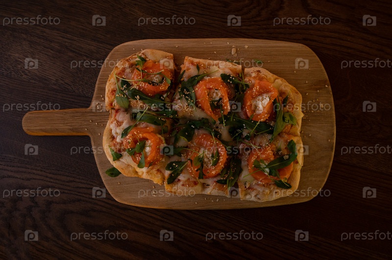 Пицца с лососем на римском тесте с рукколой