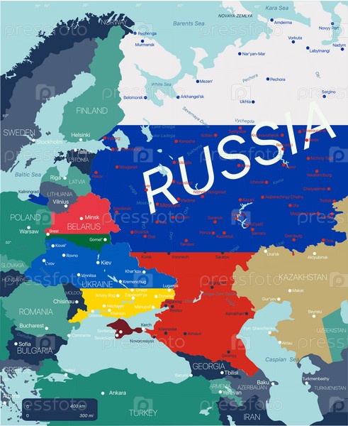 Западная часть России, Беларусь и Украина – подробная редактируемая карта