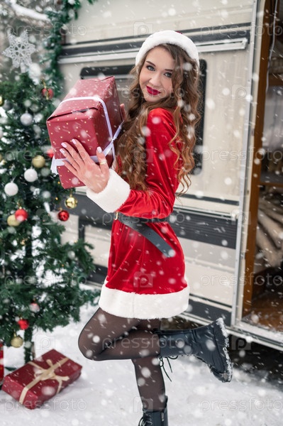 Красавица в костюме Санты в зимнем лагере
