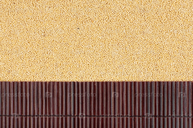 Красивый бамбуковый коврик на зернах проса в качестве сельскохозяйственного фона