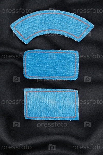 Этикетки из джинсов лежат на черном шелке