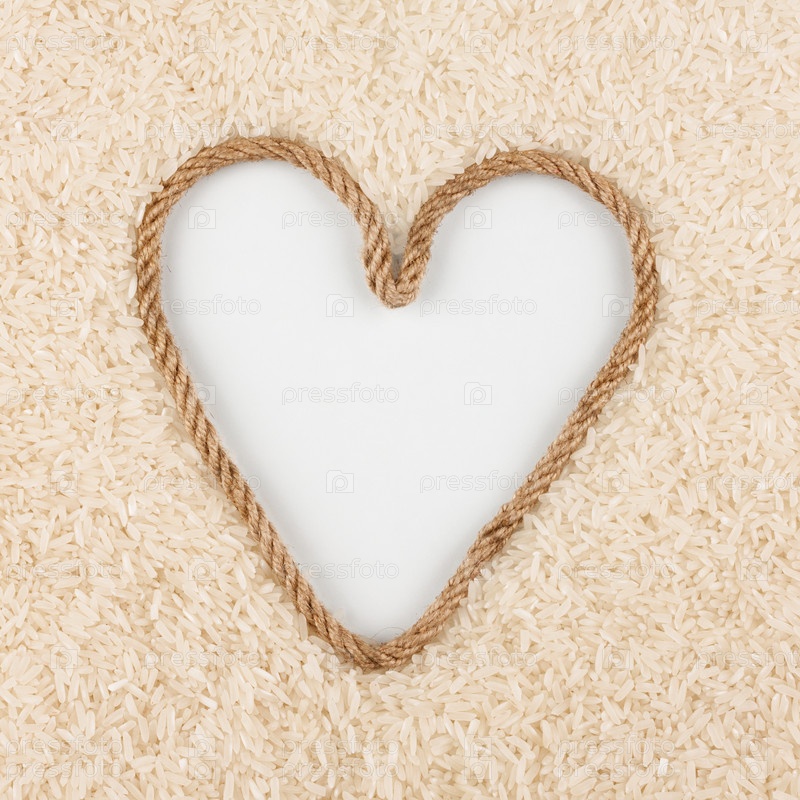 Рисовые зерна и веревка в форме сердца с местом для конструкторов