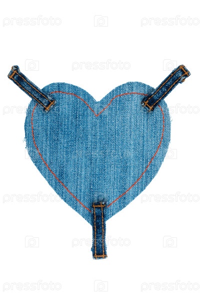 Рамка из джинсов в форме сердца, изолированная на белом фоне