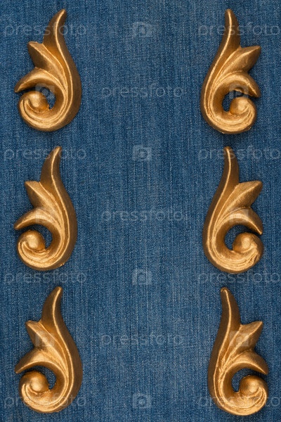 Роскошная рамка из золотой лепнины, лежащая на джинсовой ткани