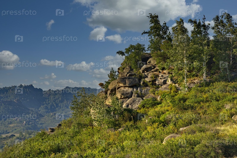 Юг Западной Сибири, Алтайский край. Причудливые скальные выходы в бескрайних степях Алтая вокруг озера Колывань, расположенного недалеко от границы с Казахстаном