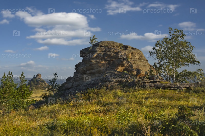 Юг Западной Сибири, Алтайский край. Причудливые скальные выходы в бескрайних степях Алтая вокруг озера Колывань, расположенного недалеко от границы с Казахстаном