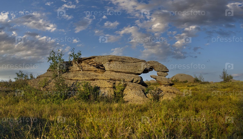 Юг Западной Сибири, Алтайский край. Причудливые скальные выходы в бескрайних степях Алтая вокруг озера Колывань, расположенного недалеко от границы с Казахстаном
