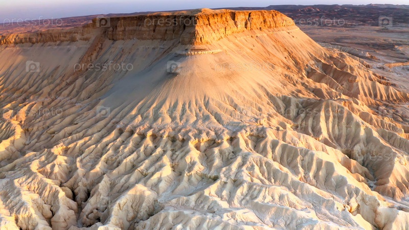 Песчаная гора на рассвете в пустыне летом (A sandstone mountain at dawn in the desert in summer)