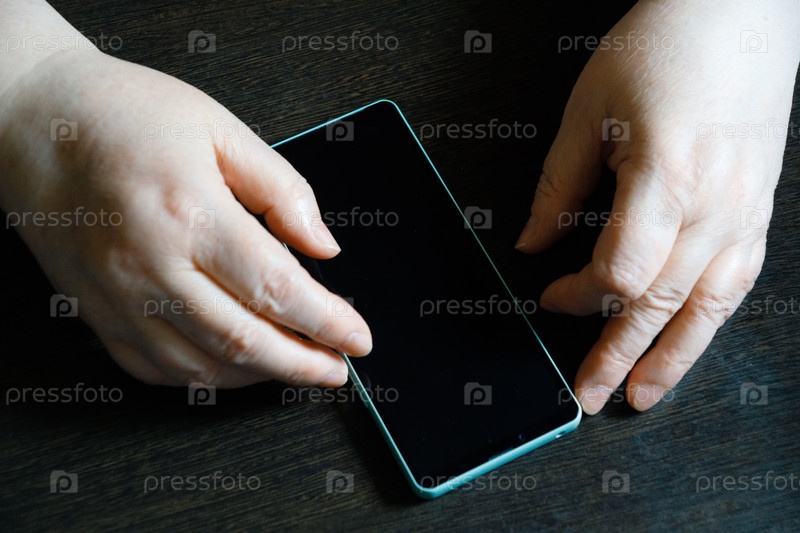 Пенсионерка держит в руках телефон с сенсорным управлением.Москва, Россия, 9 июня 2024 года