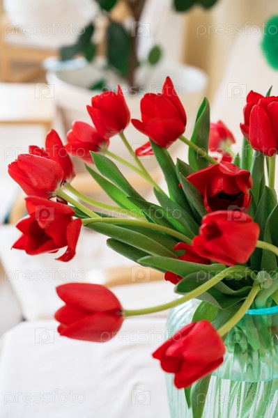Букет красных тюльпанов, весенняя концепция