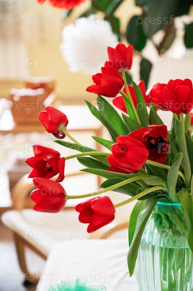 Букет красных тюльпанов, весенняя концепция