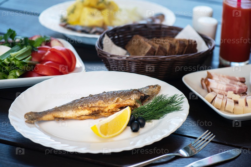 Жареная рыба хариус
