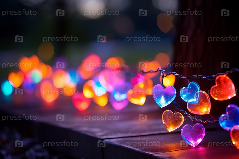 Сказочные огни с красочными сердечками на фоне боке