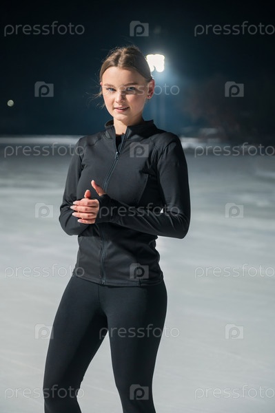 Красивая молодая женщина катается на коньках и выполняет короткую программу
