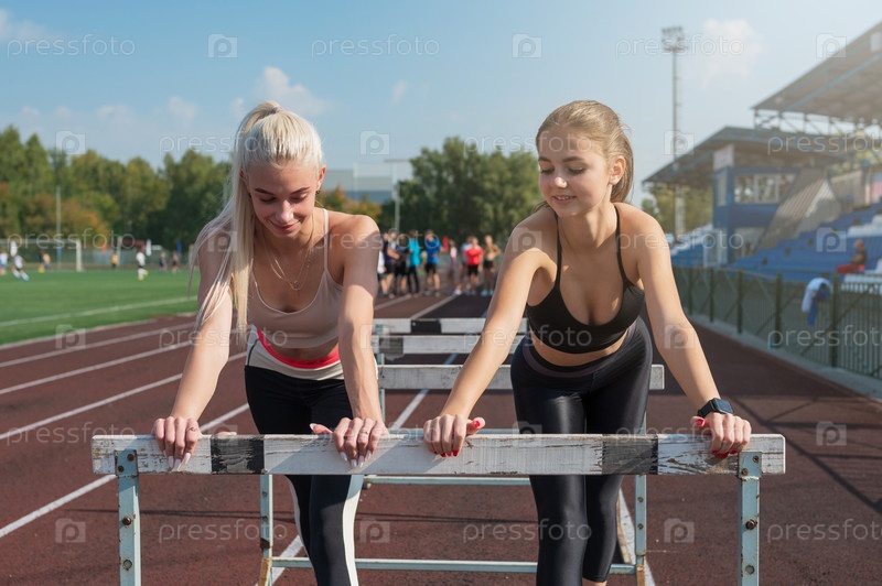 Две спортсменки-бегуны на стадионе